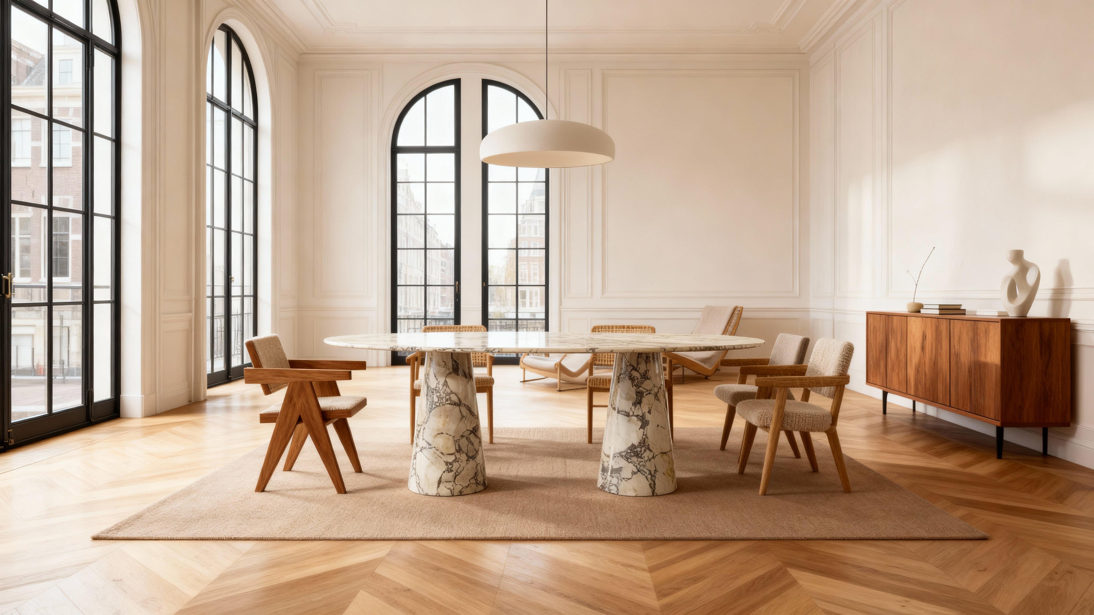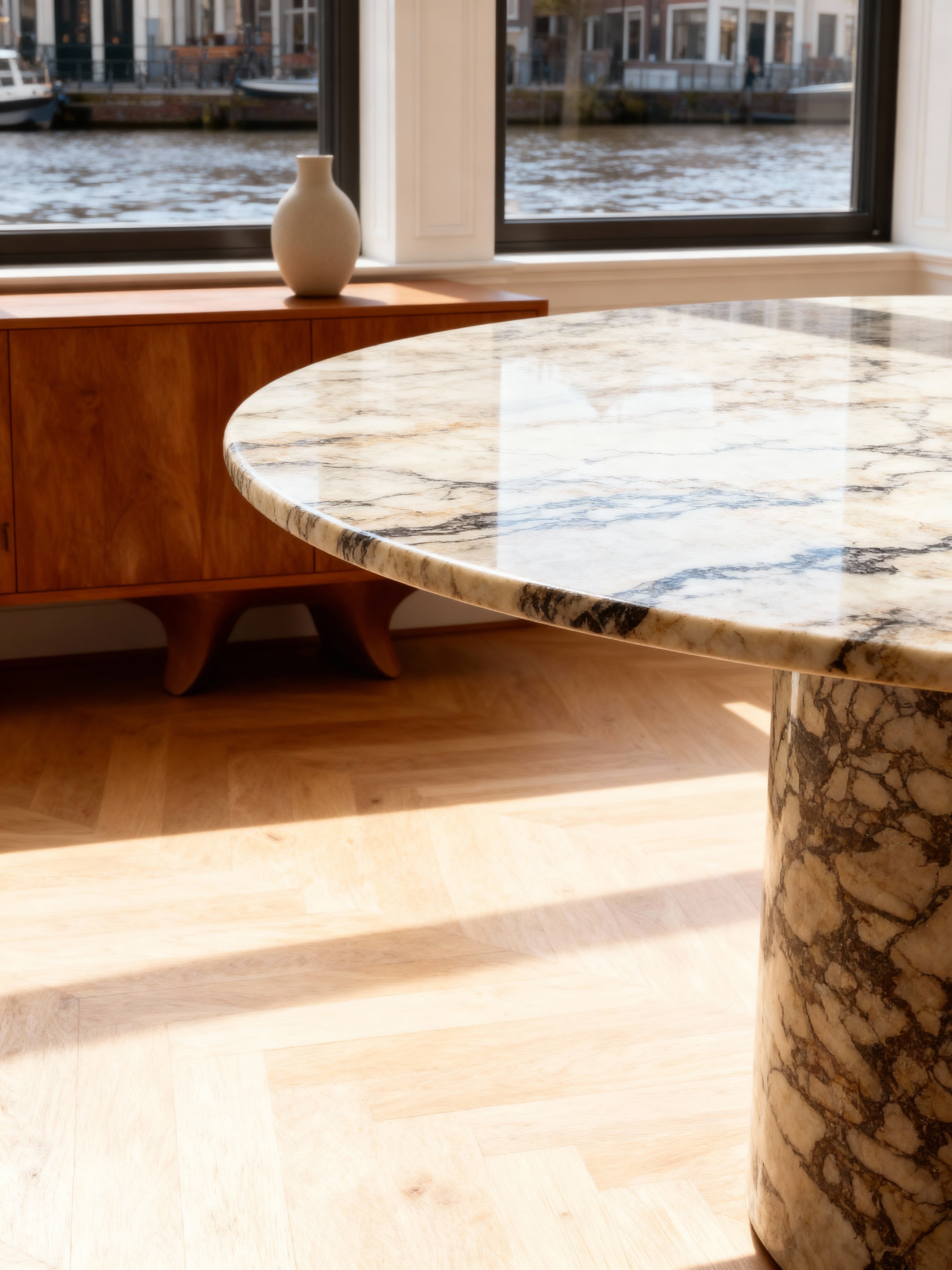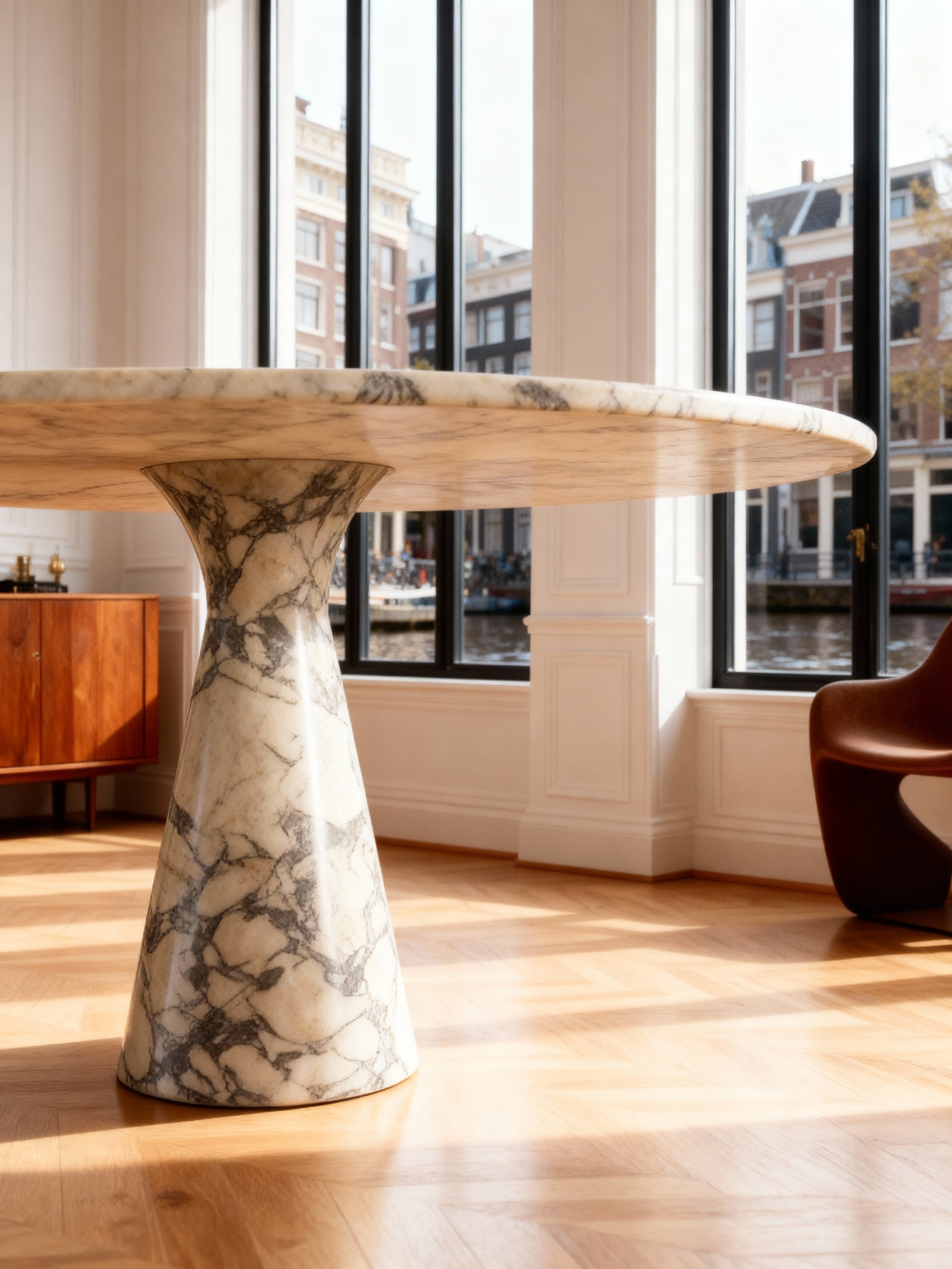 Sculpted in Calacatta Viola marble, the VANTA Collection embodies elegance and strength, defined by striking violet veins and natural depth.